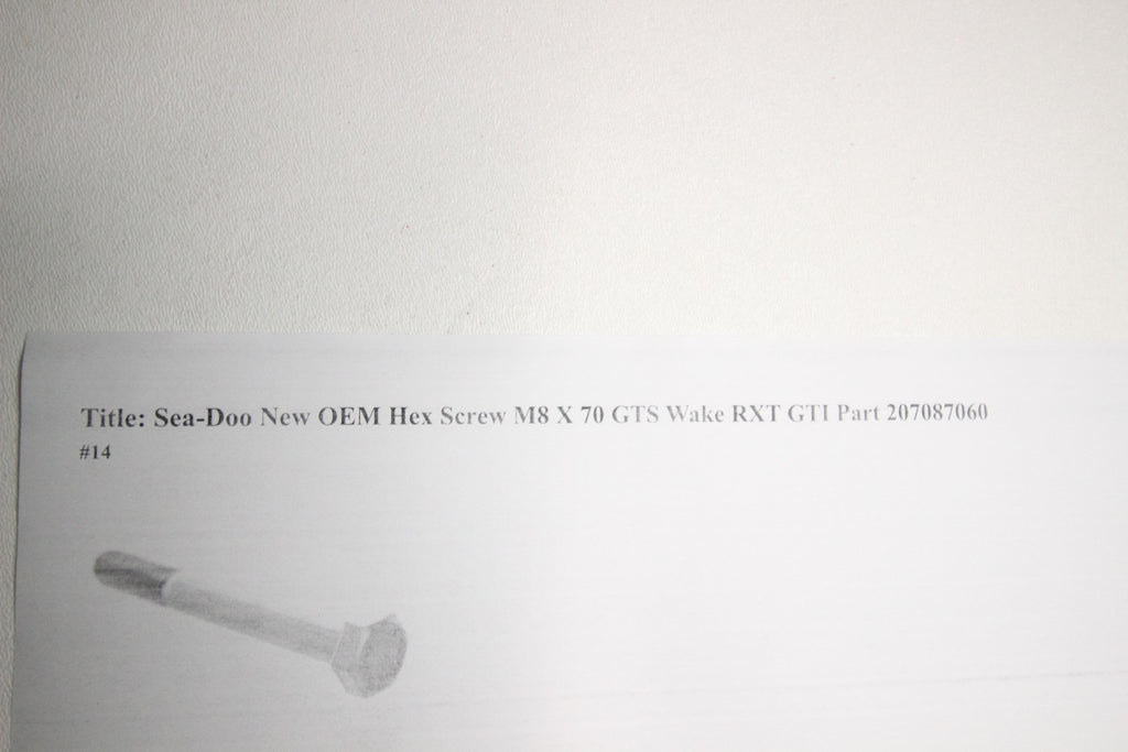 This listing is for a Sea-Doo New OEM Hex Screw M8 X 70 GTS Wake RXT GTI Part 207087060 Manufacturer Part Number: 207087060